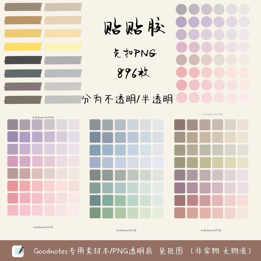 莫蘭迪色膠帶 實色 半透明 貼紙素材 電子手帳 Goodnotes Notability 子彈筆記 Ipad手帳模板 蝦皮購物